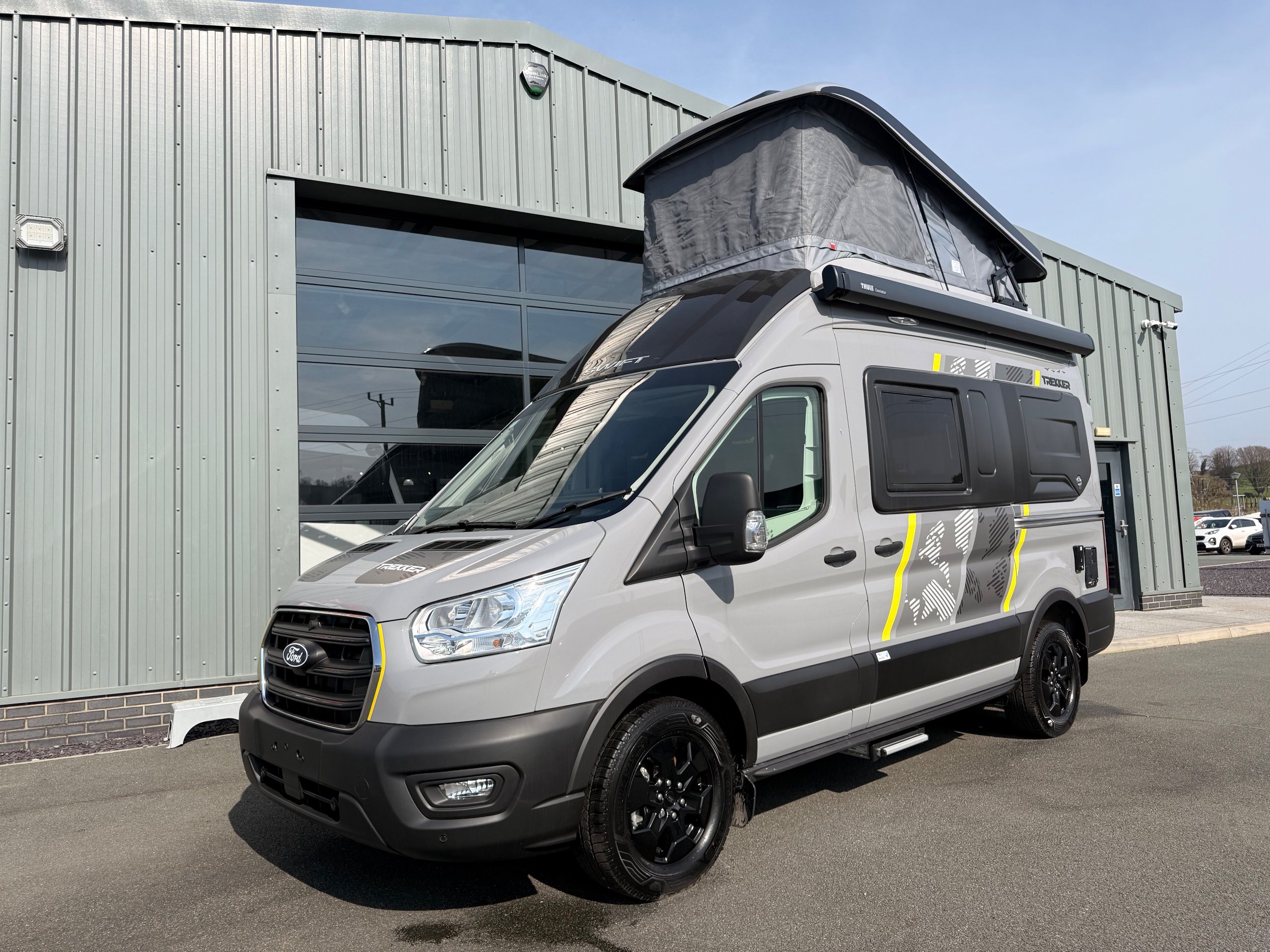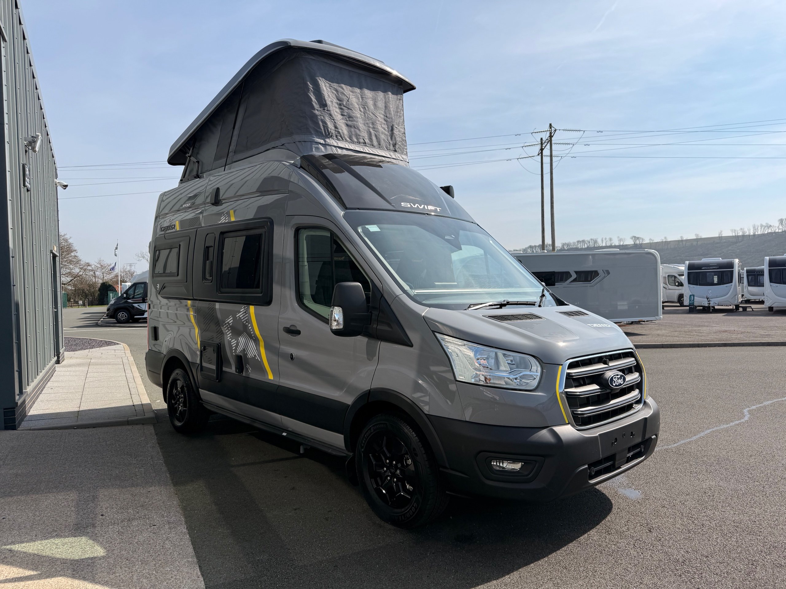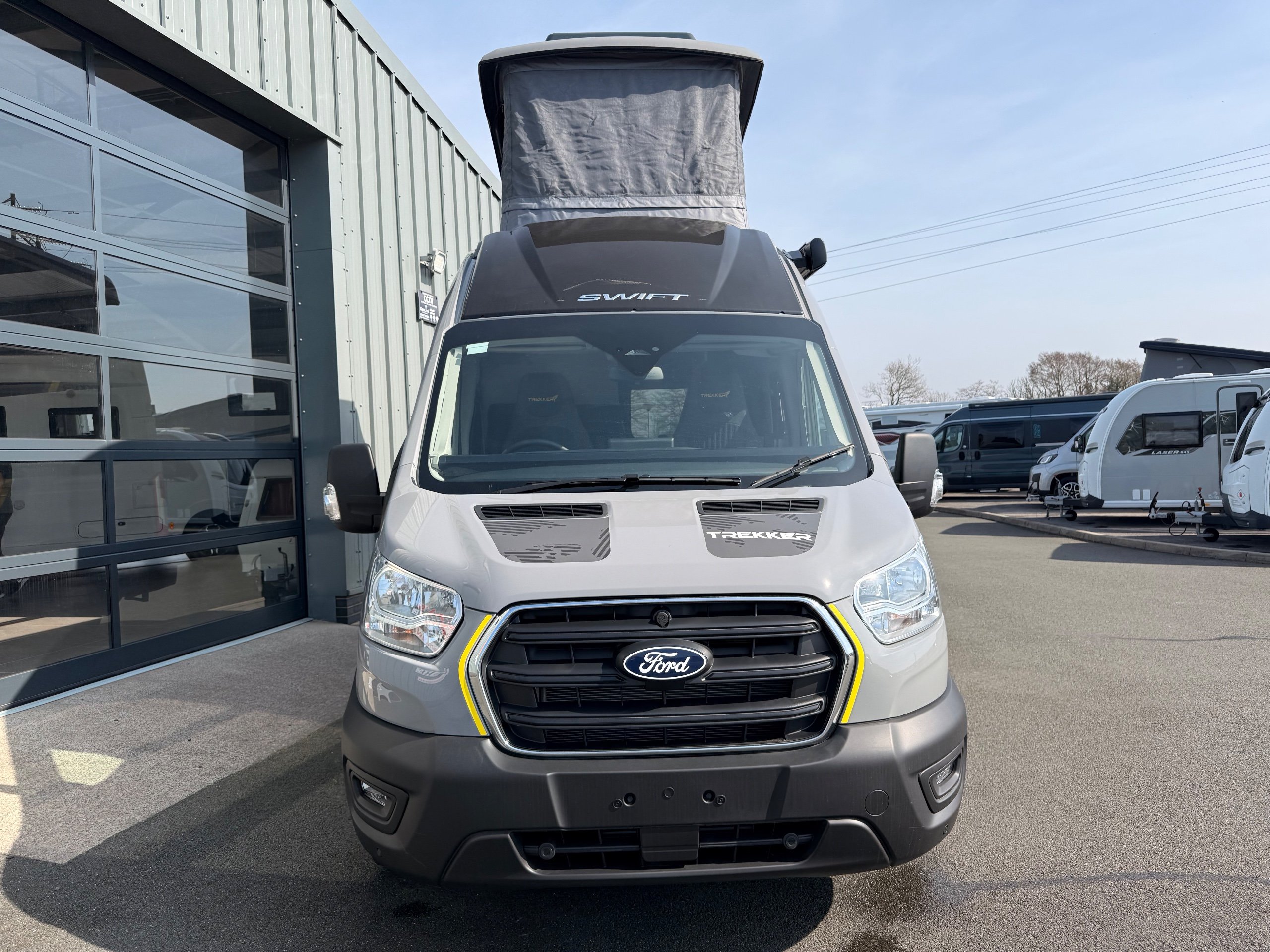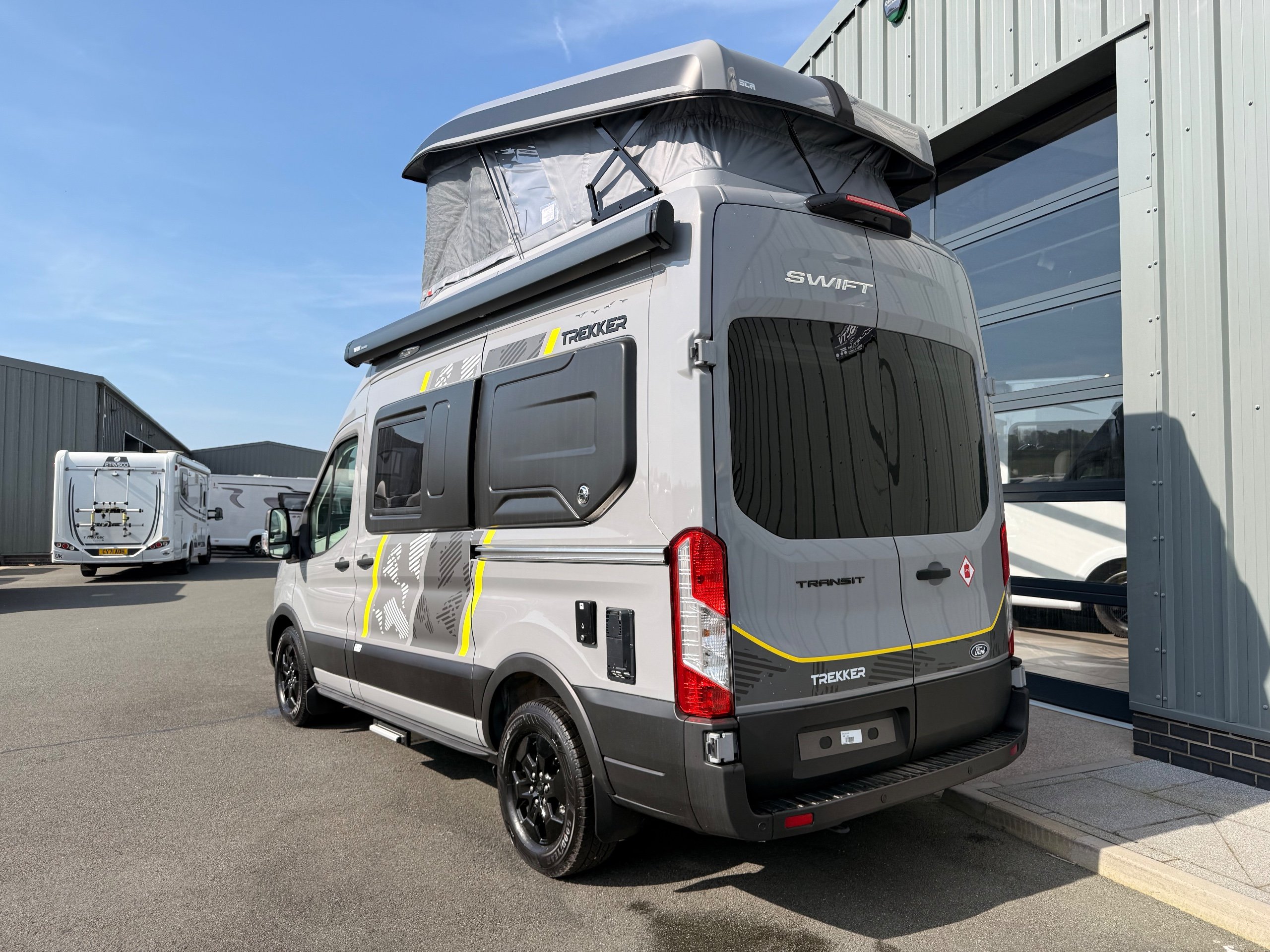Your next adventure awaits with the multi-award winning Swift Trekker Built to take on the elements, the Trekker’s bold design is as tough as the adventures it’s made for. With a commanding presence and a look that means business, this is a campervan that’s ready for the road less travelled. Trekker highlights The Trekker comes with features that make this range special: • Elevating roof system (Trekker & Trekker X) • Built-in oven with grill • Washroom and shower tray • Ultra-low energy LED lighting system • Dedicated USB points • Whale heating system • Duvalay Duvalite Alto mattresses • Parking aids & rear view camera -