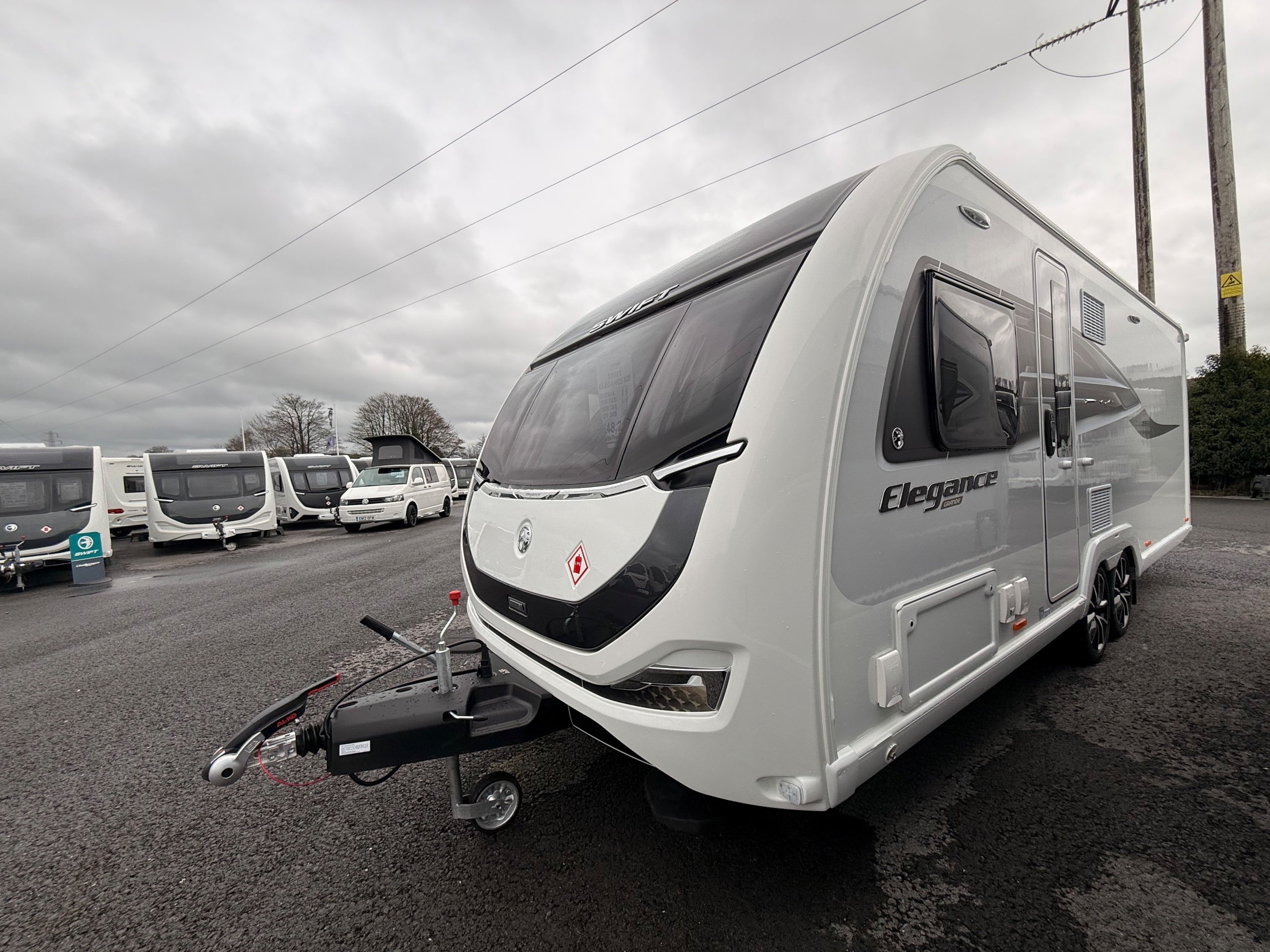 As our flagship range, Elegance Grande offers the highest level of touring comfort and style. With 8ft-wide layouts, refined finishes and a boutique-inspired design, it’s made for those who want to travel without compromise. From the superior Swift Command control panel to the premium Duvalay mattresses – and even a footrest in L-shape lounge models - every detail is crafted for a luxurious experience. Elegance Grande highlights The Elegance Grande comes with features that make this range special: - Onboard 4G Wi-Fi - Alde underfloor heating - 17” diamond cut Edge alloy wheels - BBQ point and connector - Boutique style dedicated washroom - Low energy LED lighting throughout - Wireless charging pad - Duvalay Duvalite Alto mattress -