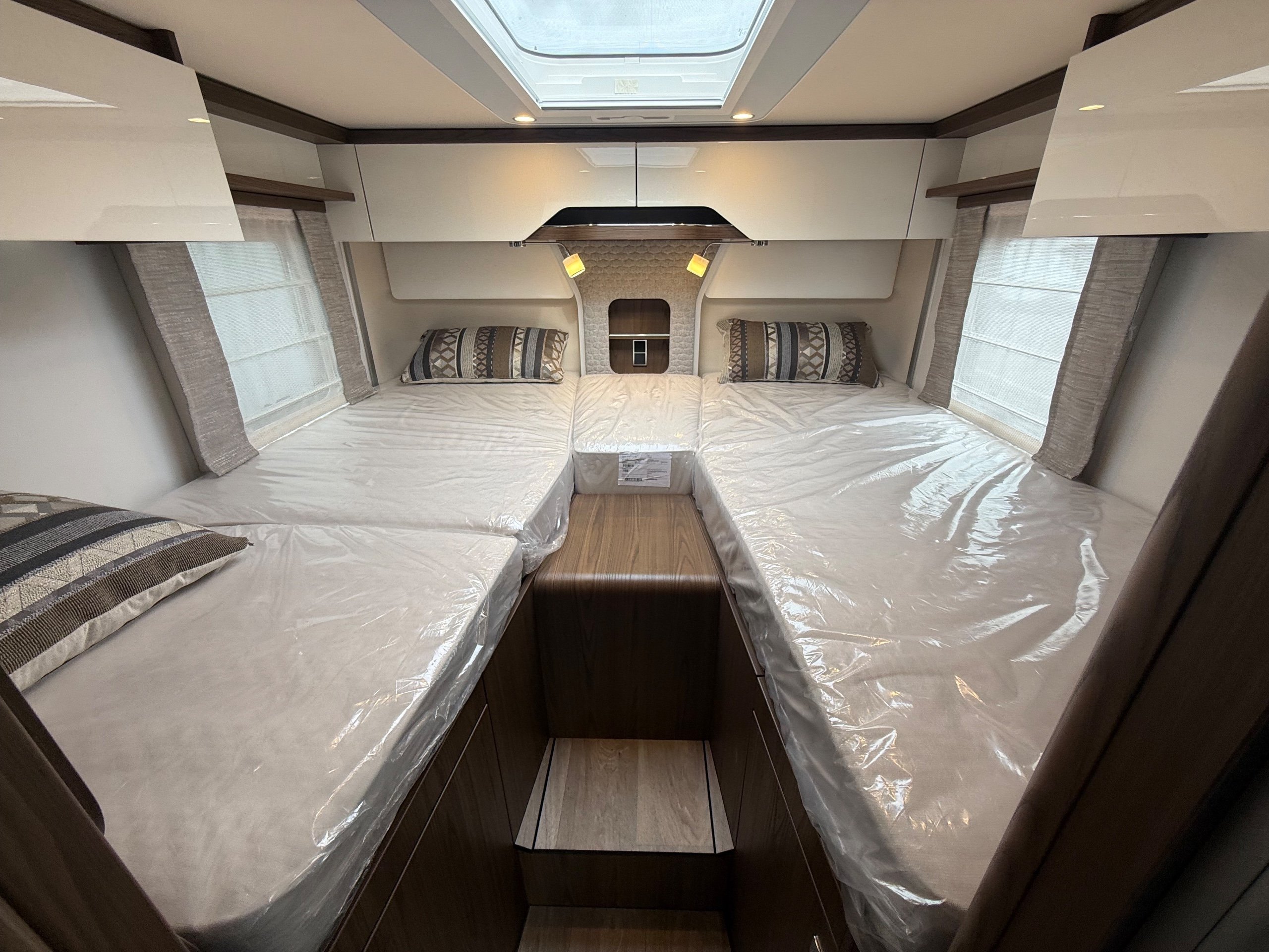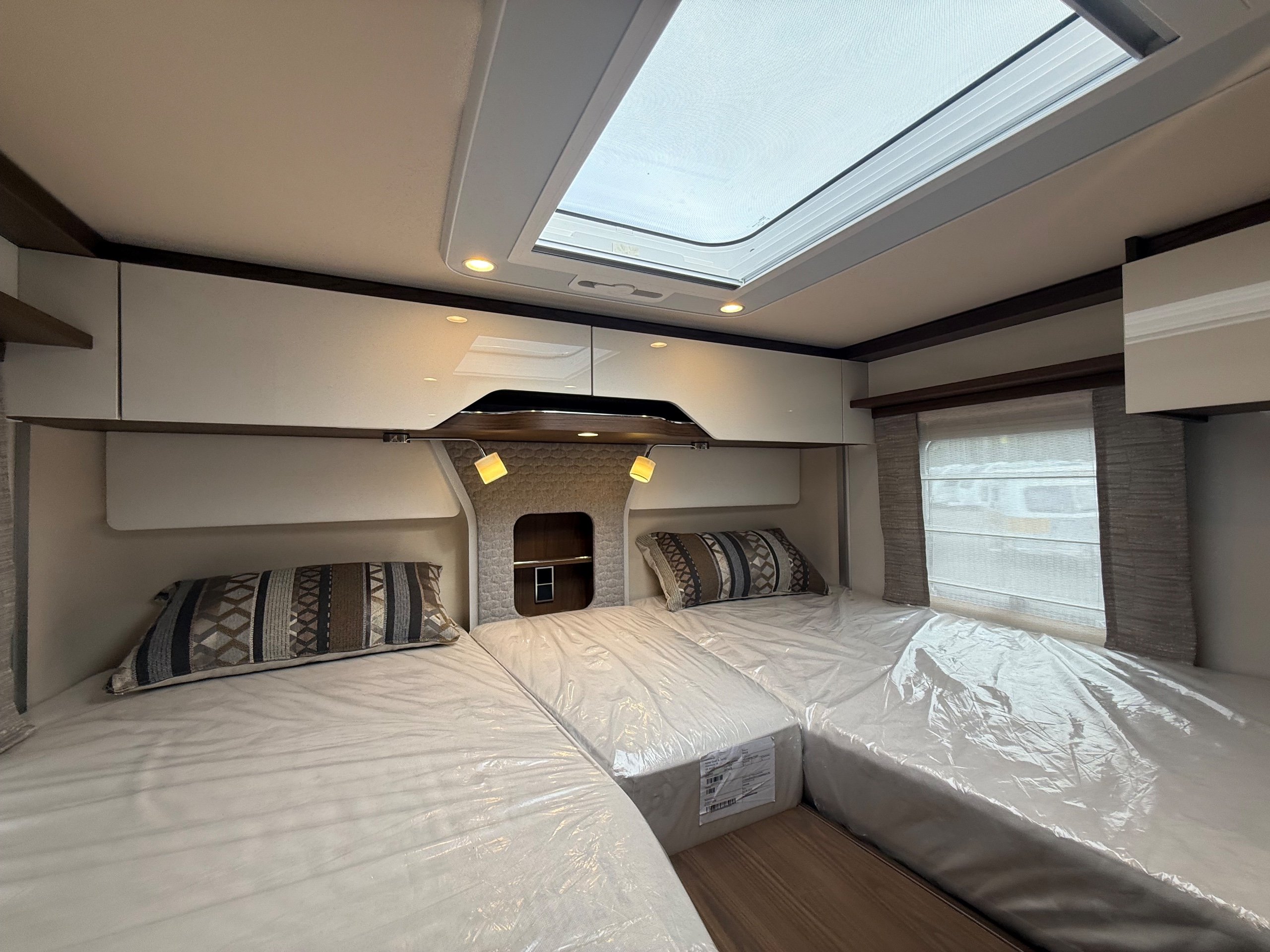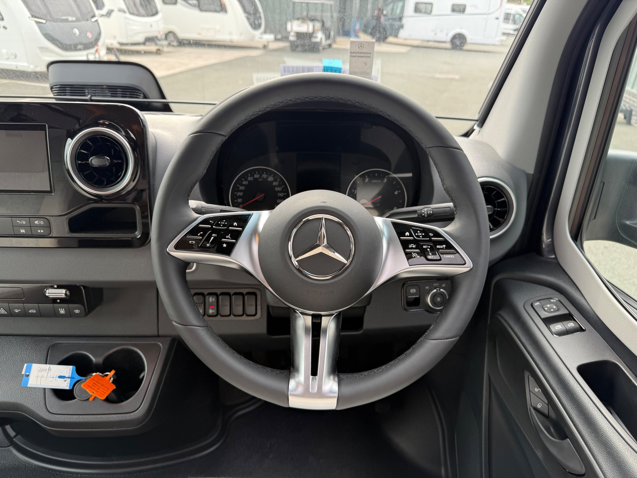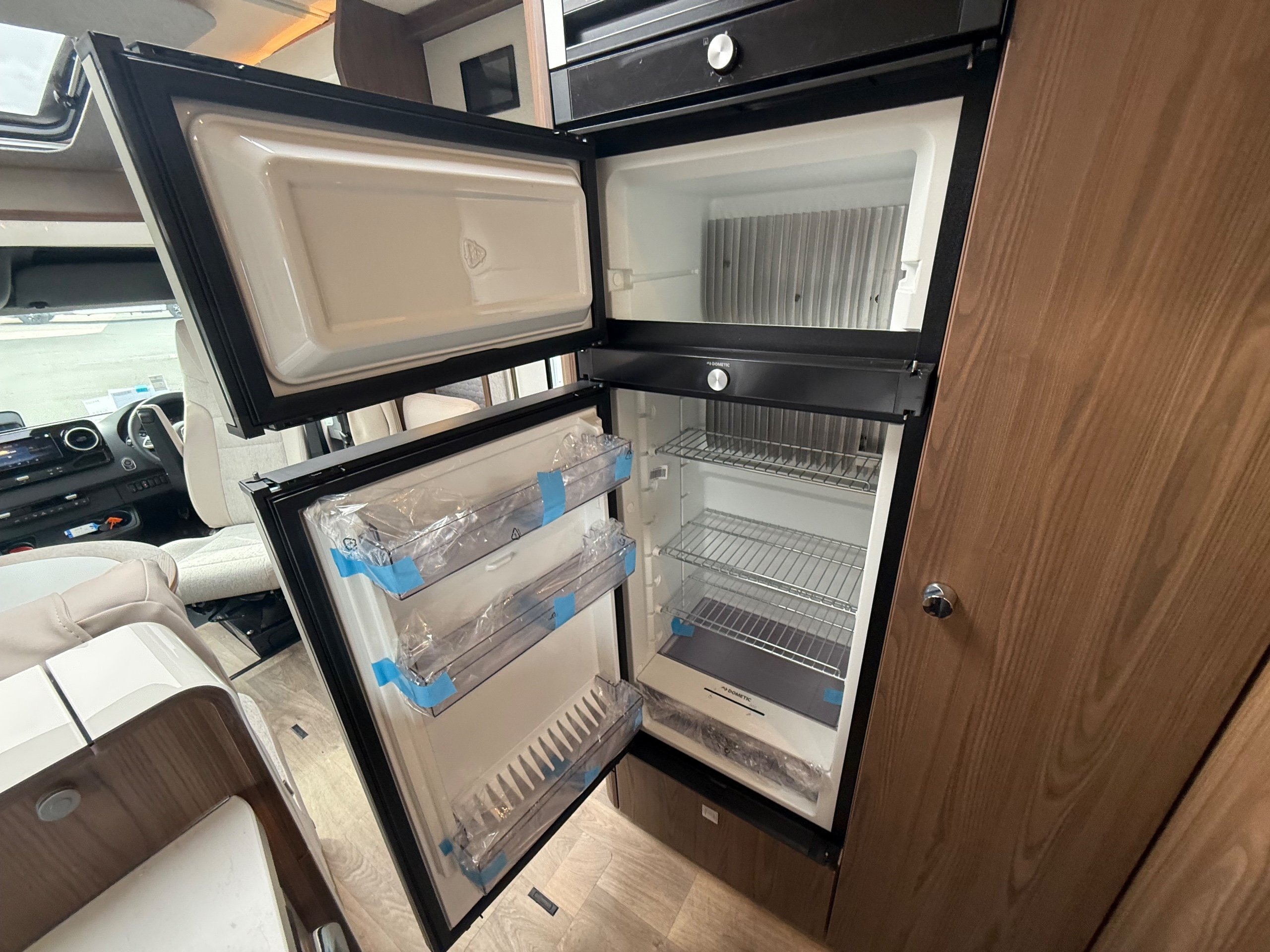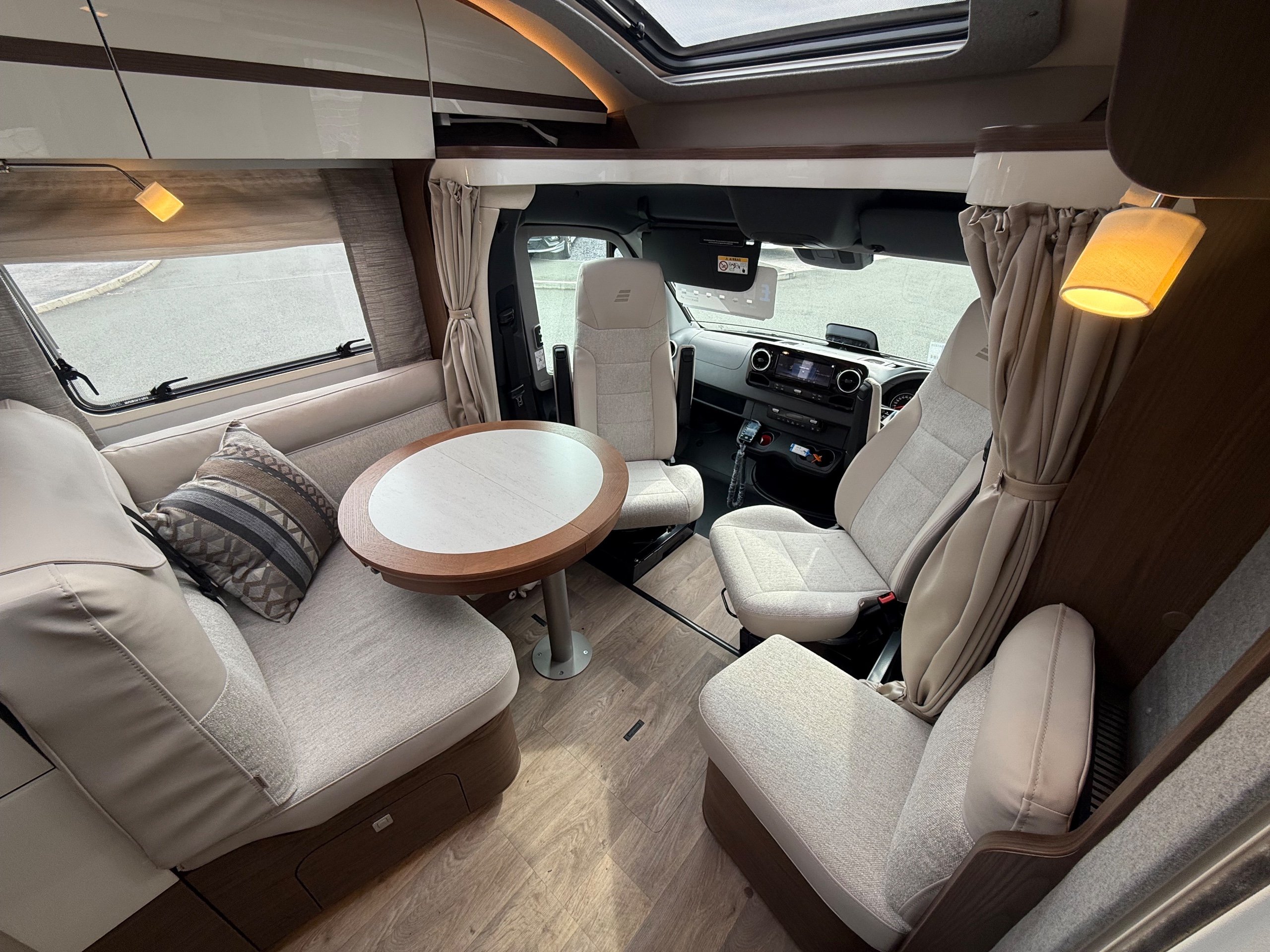 Offering guaranteed quality and technical expertise, the HYMER B-Class MasterLine is setting new standards in the premium segment. As our flagship, it embodies a state-of-the-art body shell design, exclusive design features as well as premium interior furnishings, and creates an all-round generous feeling of space. Following the huge success of the HYMER B-Class MasterLine I, with the HYMER B-ML T we are offering the tried-and-tested features of the luxurious integrated model combined with the exceptional handling characteristics and benefits of a semi-integrated model. Equipped with the nippy Mercedes-Benz chassis cowl, the HYMER B-ML T is the next logical addition to our premium range of motorhomes. Specification • Equipment Line Premium LP • Style package • Living Comfort package • Arctic package • 16" alloy wheels (black) with All Season tyres • 32" LED-TV with built-in speakers, remote control, DVD drive, HYMER Smart • Multimedia system with Bluetooth® (DVB-T / C, DVB-S2), electric bracket as well as receiver • Cab seats, upholstered in living area fabric, swivelling, height- and tilt adjustable with 2 armrests • Carpet: Laguna • Comfort L-shaped seating group with lounge cushions, longitudinal / transverse sliding table and 2 built-in 3-point belts • Comfort jacks, rear (2 units) • Comfort-Plus habitation door incl. closing aid, RFID (keyless) access as well as central locking • Cupholder instead of storage compartment • Drawer and insert tray storage space in seating group • Electric roof vent with function supply and exhaust air at kitchen • Exterior body colour: Crystal-Silver Metallic • Exterior cab colour: Tenorite grey (Metallic) • Four-circuit air suspension (2 axles) • Frame extension incl. 450 kg garage load • Furniture finish: Velvet Ash • Gas filter for automatic gas bottle changeover • HYMER Smart Battery System 2.0 - extension: 2nd habitation battery module 80 Ah LFP incl. additional charger (160 Ah overall capacity) • HYMER panoramic skylight 80 x 50 cm, double-glazed, rear bedroom • Heated windscreen • Mercedes-Benz Sprinter 4.43 t - 417 CDI - 125 KW/170 hp - Euro VI-E • Premium round and extendable table with real wood frame • Roof AirCon, 2,400 W • Roof awning incl. dimmable LED lighting, silver housing, 450 x 300 cm • Security lock for habitation door • Solar panel with solar charge controller (MPPT) and display, 2 x 95 W • TEC-Tower (153 l fridge/freezer unit, oven) • Textile leather-/ fabric combination: Marquis • Weight variant 4,500 kg (Mercedes-Benz Sprinter 415 / 417 CDI only) -