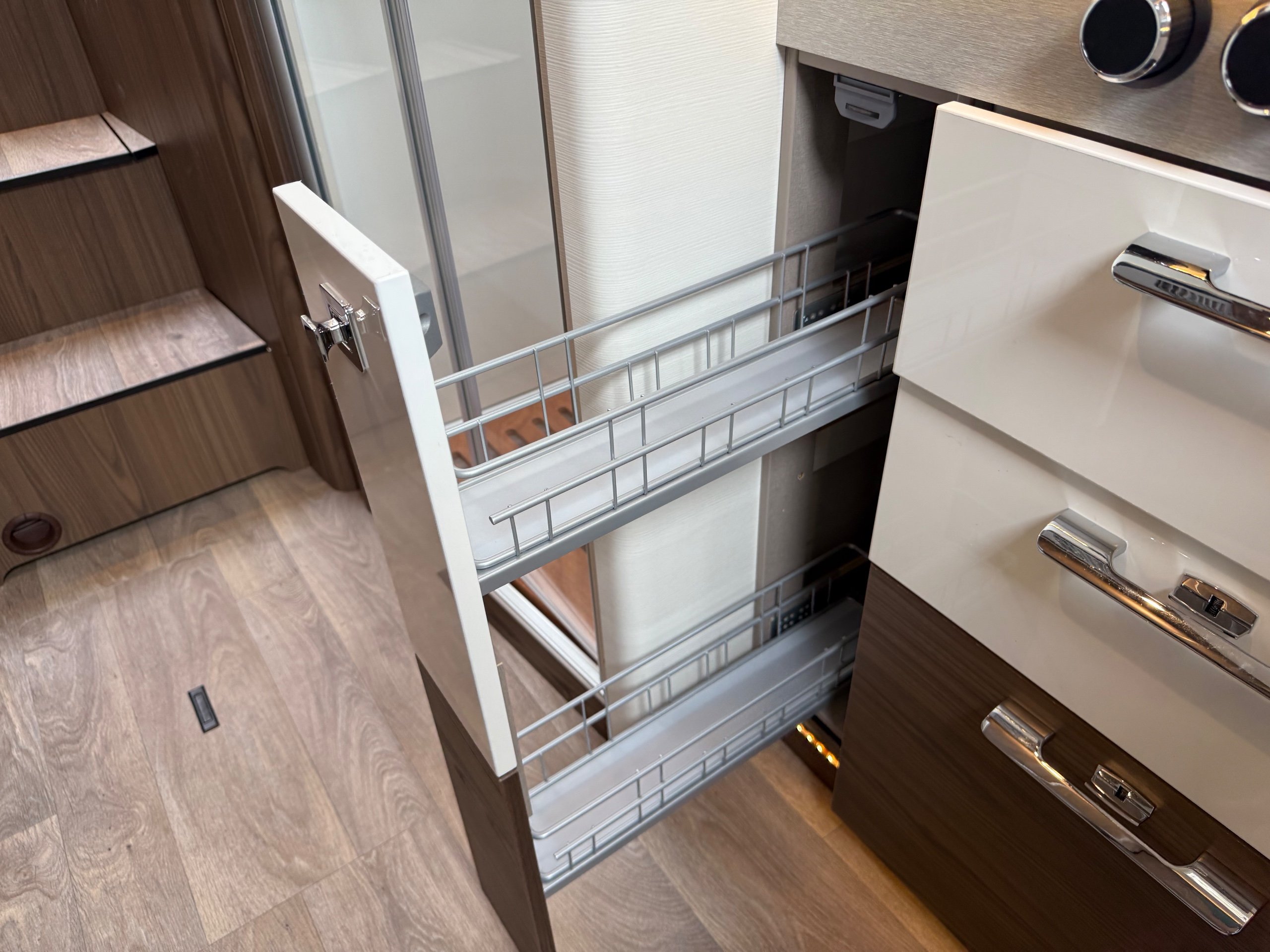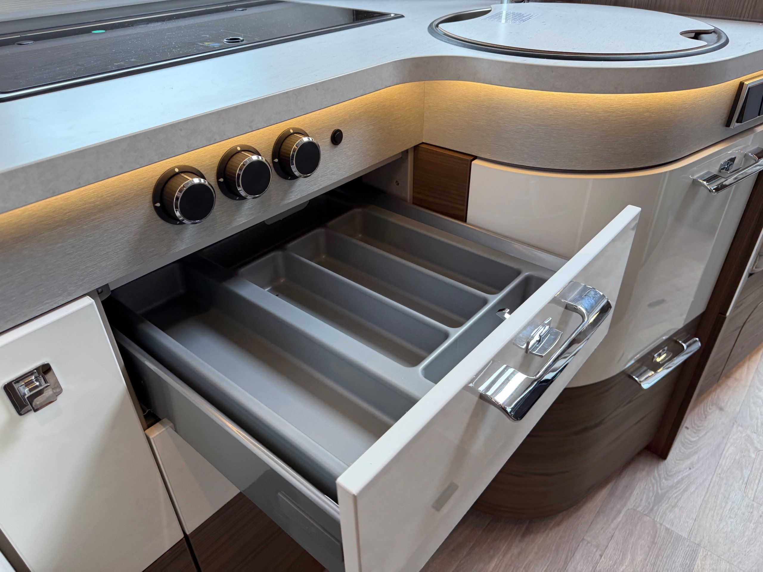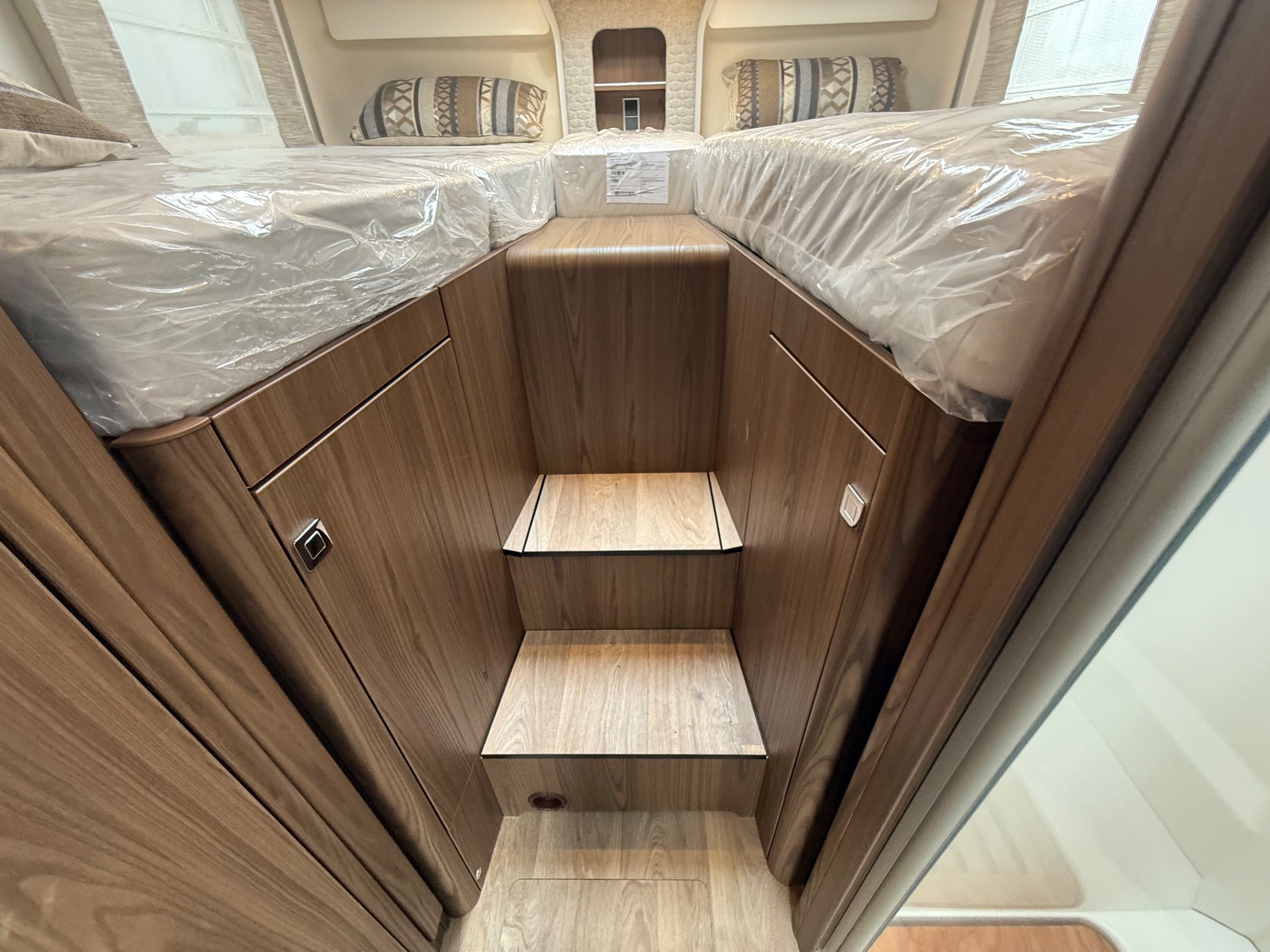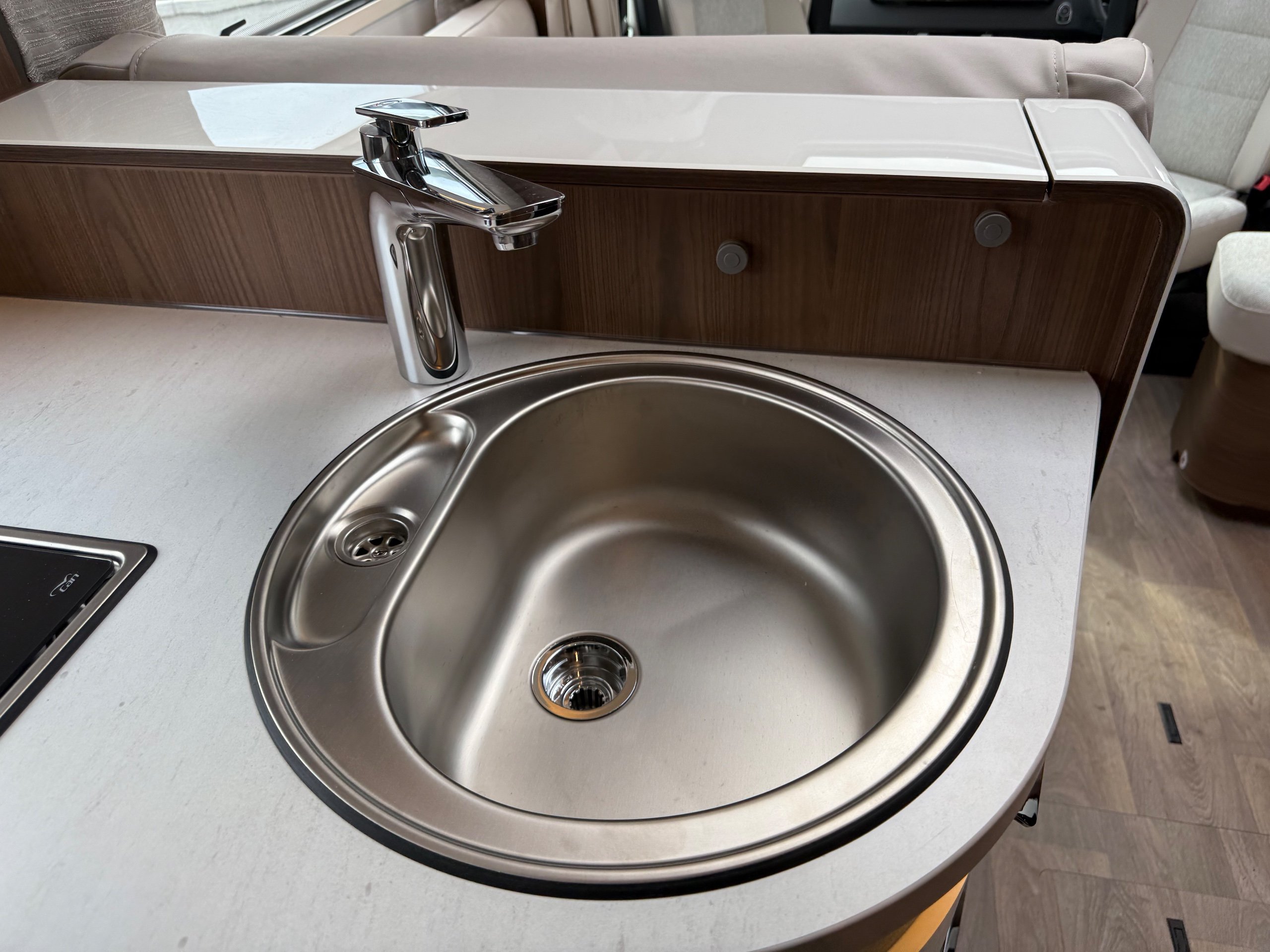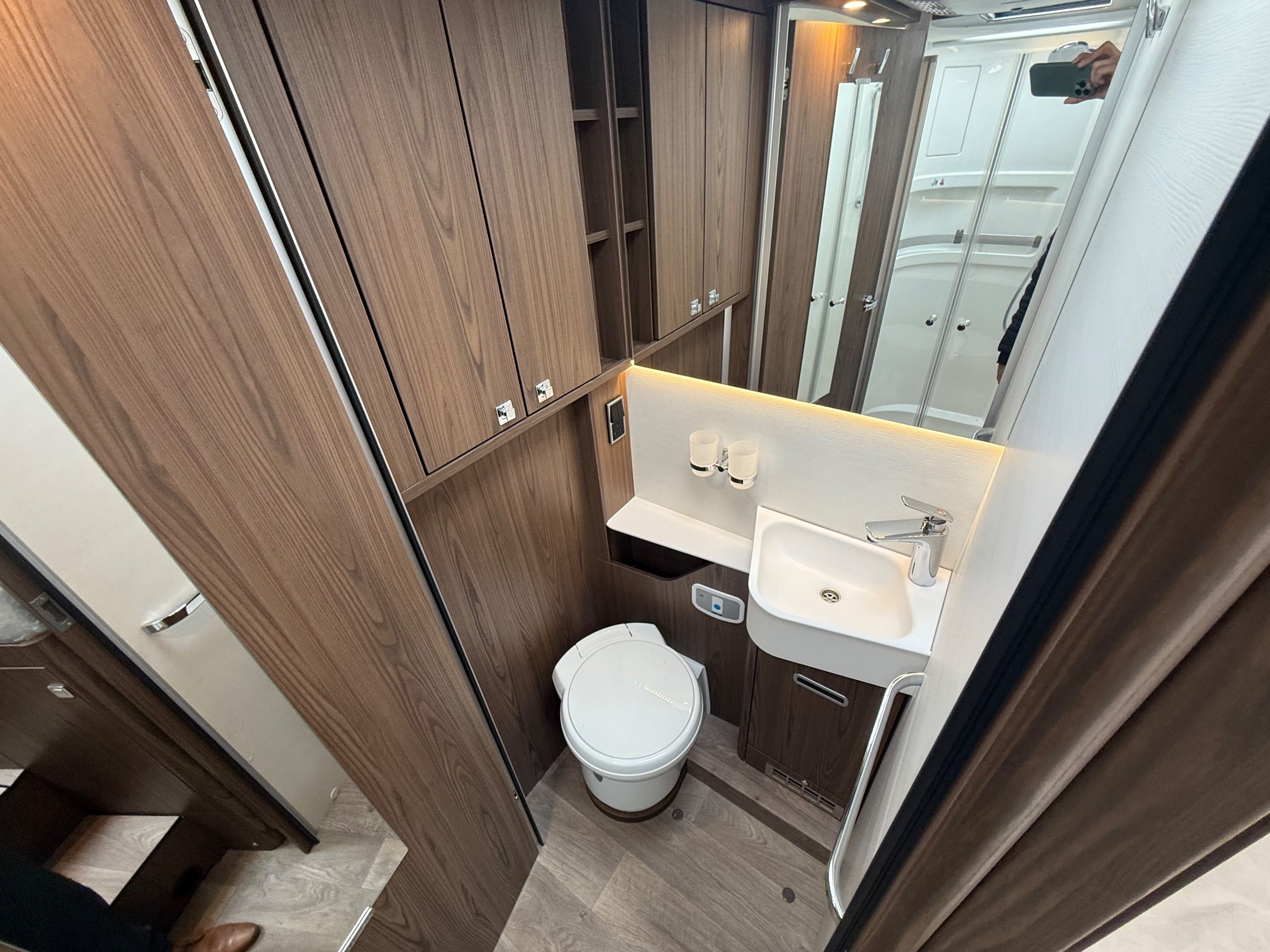 Offering guaranteed quality and technical expertise, the HYMER B-Class MasterLine is setting new standards in the premium segment. As our flagship, it embodies a state-of-the-art body shell design, exclusive design features as well as premium interior furnishings, and creates an all-round generous feeling of space. Following the huge success of the HYMER B-Class MasterLine I, with the HYMER B-ML T we are offering the tried-and-tested features of the luxurious integrated model combined with the exceptional handling characteristics and benefits of a semi-integrated model. Equipped with the nippy Mercedes-Benz chassis cowl, the HYMER B-ML T is the next logical addition to our premium range of motorhomes. Specification • Equipment Line Premium LP • Style package • Living Comfort package • Arctic package • 16" alloy wheels (black) with All Season tyres • 32" LED-TV with built-in speakers, remote control, DVD drive, HYMER Smart • Multimedia system with Bluetooth® (DVB-T / C, DVB-S2), electric bracket as well as receiver • Cab seats, upholstered in living area fabric, swivelling, height- and tilt adjustable with 2 armrests • Carpet: Laguna • Comfort L-shaped seating group with lounge cushions, longitudinal / transverse sliding table and 2 built-in 3-point belts • Comfort jacks, rear (2 units) • Comfort-Plus habitation door incl. closing aid, RFID (keyless) access as well as central locking • Cupholder instead of storage compartment • Drawer and insert tray storage space in seating group • Electric roof vent with function supply and exhaust air at kitchen • Exterior body colour: Crystal-Silver Metallic • Exterior cab colour: Tenorite grey (Metallic) • Four-circuit air suspension (2 axles) • Frame extension incl. 450 kg garage load • Furniture finish: Velvet Ash • Gas filter for automatic gas bottle changeover • HYMER Smart Battery System 2.0 - extension: 2nd habitation battery module 80 Ah LFP incl. additional charger (160 Ah overall capacity) • HYMER panoramic skylight 80 x 50 cm, double-glazed, rear bedroom • Heated windscreen • Mercedes-Benz Sprinter 4.43 t - 417 CDI - 125 KW/170 hp - Euro VI-E • Premium round and extendable table with real wood frame • Roof AirCon, 2,400 W • Roof awning incl. dimmable LED lighting, silver housing, 450 x 300 cm • Security lock for habitation door • Solar panel with solar charge controller (MPPT) and display, 2 x 95 W • TEC-Tower (153 l fridge/freezer unit, oven) • Textile leather-/ fabric combination: Marquis • Weight variant 4,500 kg (Mercedes-Benz Sprinter 415 / 417 CDI only) -