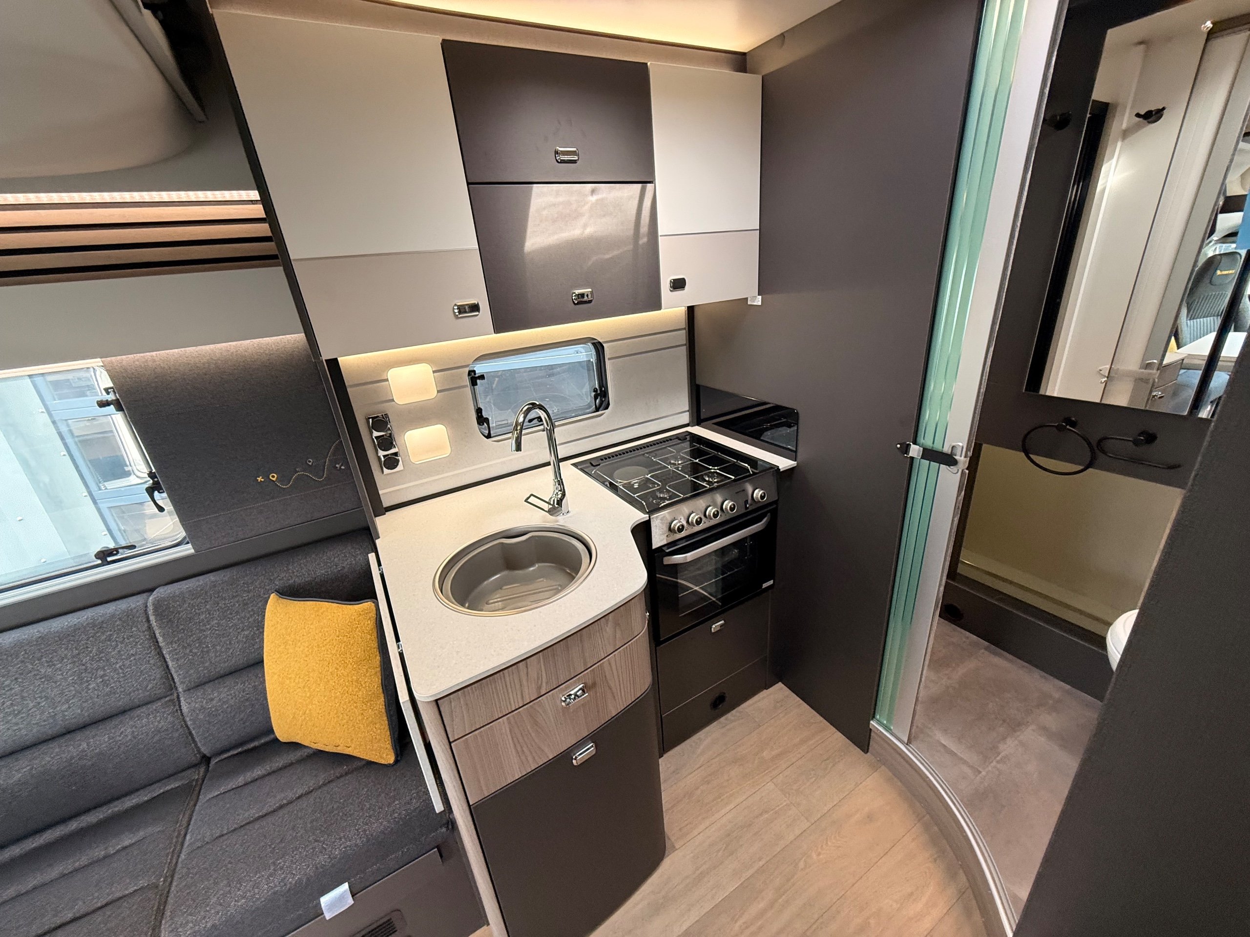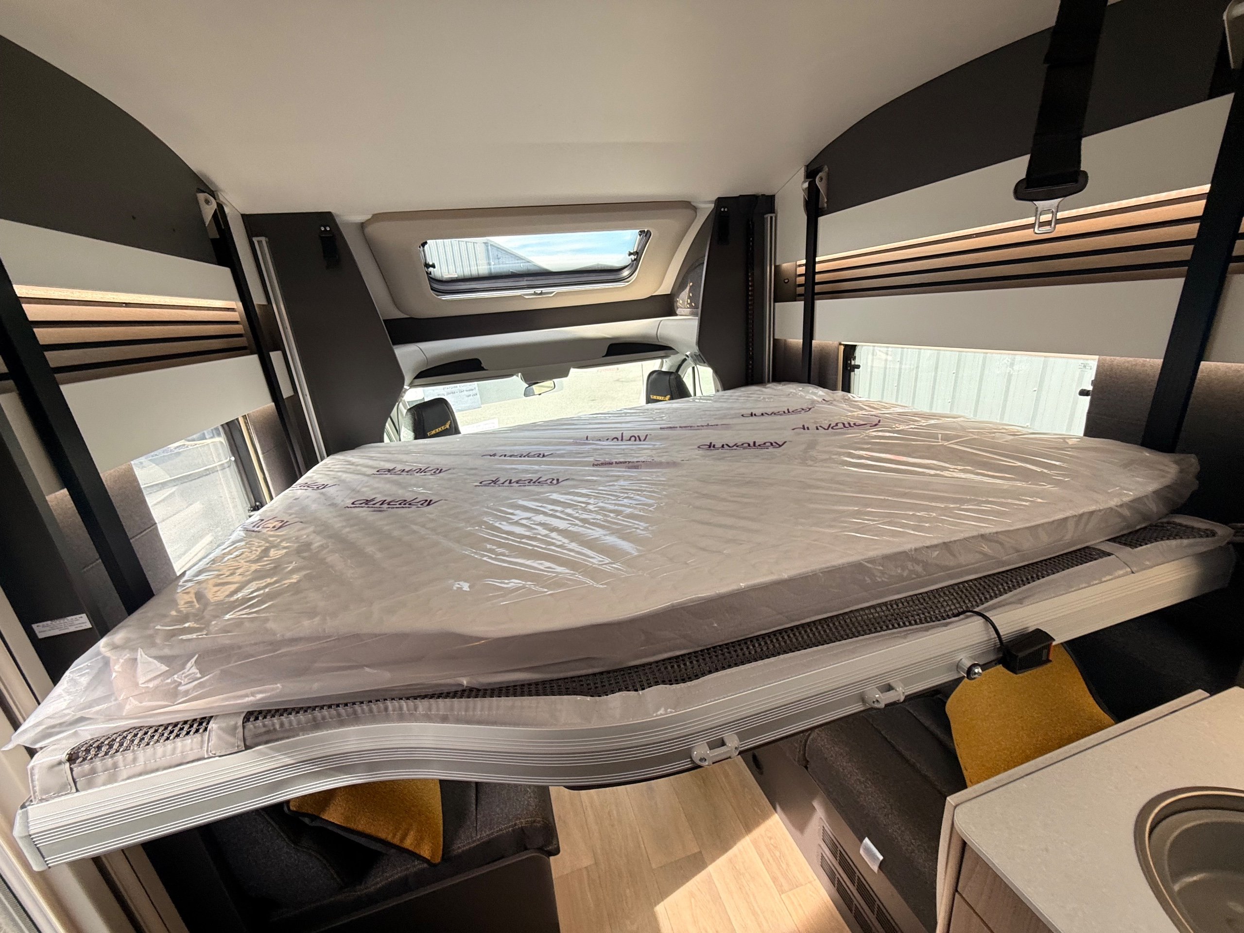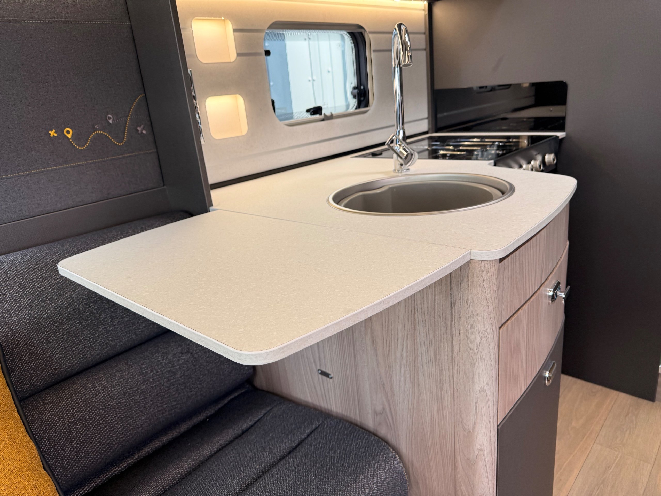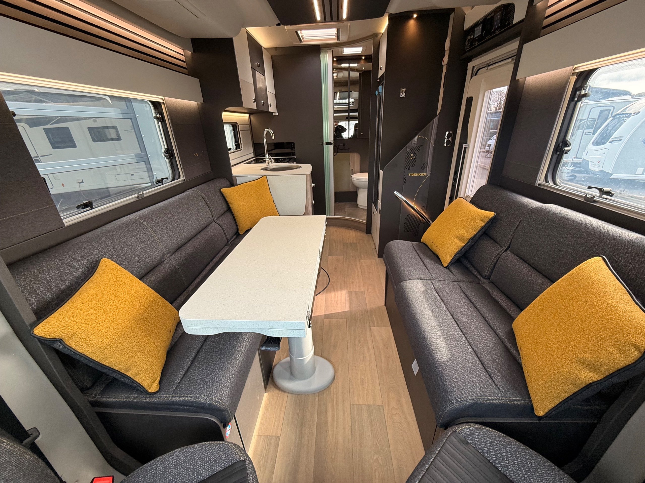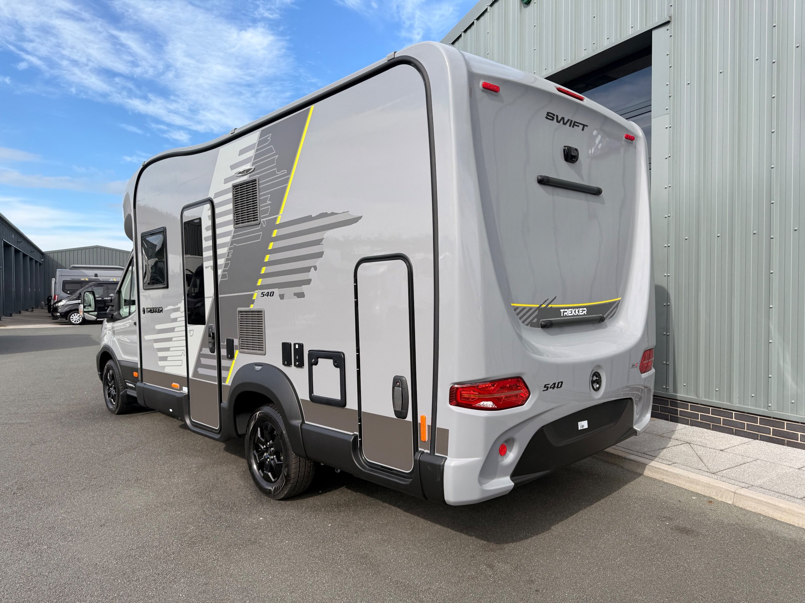Trekker brings the adventurous spirit to a spacious motorhome format New for 2026, Trekker brings the bold styling and adventurous spirit of our popular campervan range to a spacious motorhome format. Built on the trusted Ford chassis shared with the award-winning Voyager, Trekker offers confidence on the road with added room to roam. Designed for those who refuse to choose between style and practicality, its distinctive design is matched by a smart, adventure-ready interior - perfect for off-the-beaten-path escapes or everyday getaways. Trekker 540 (Motorhome of the Year, Best Drop-Down Bed Motorhome & Best 4 Berth Motorhome) is a 2026 season multi-award winner. Trekker highlights The Trekker comes with features that make this range special: External BBQ & cold water shower point 120W solar panel and regulator Rear garage with lighting Rear reversing camera Dedicated USB points Ford Trail front bumper and grille with wide body side mouldings Striking exterior graphics scheme coordinated with cab Truma CombiNeo Heating & Hot Water System DAB Radio with Apple Carplay™ / Android Auto™ -
