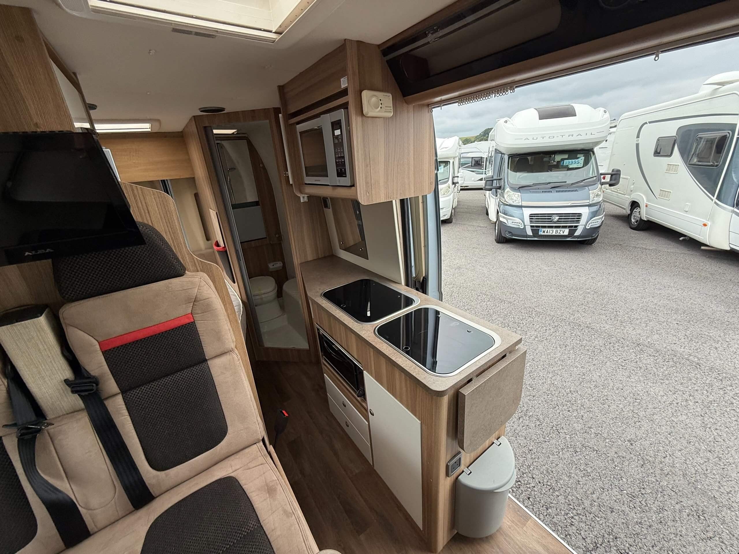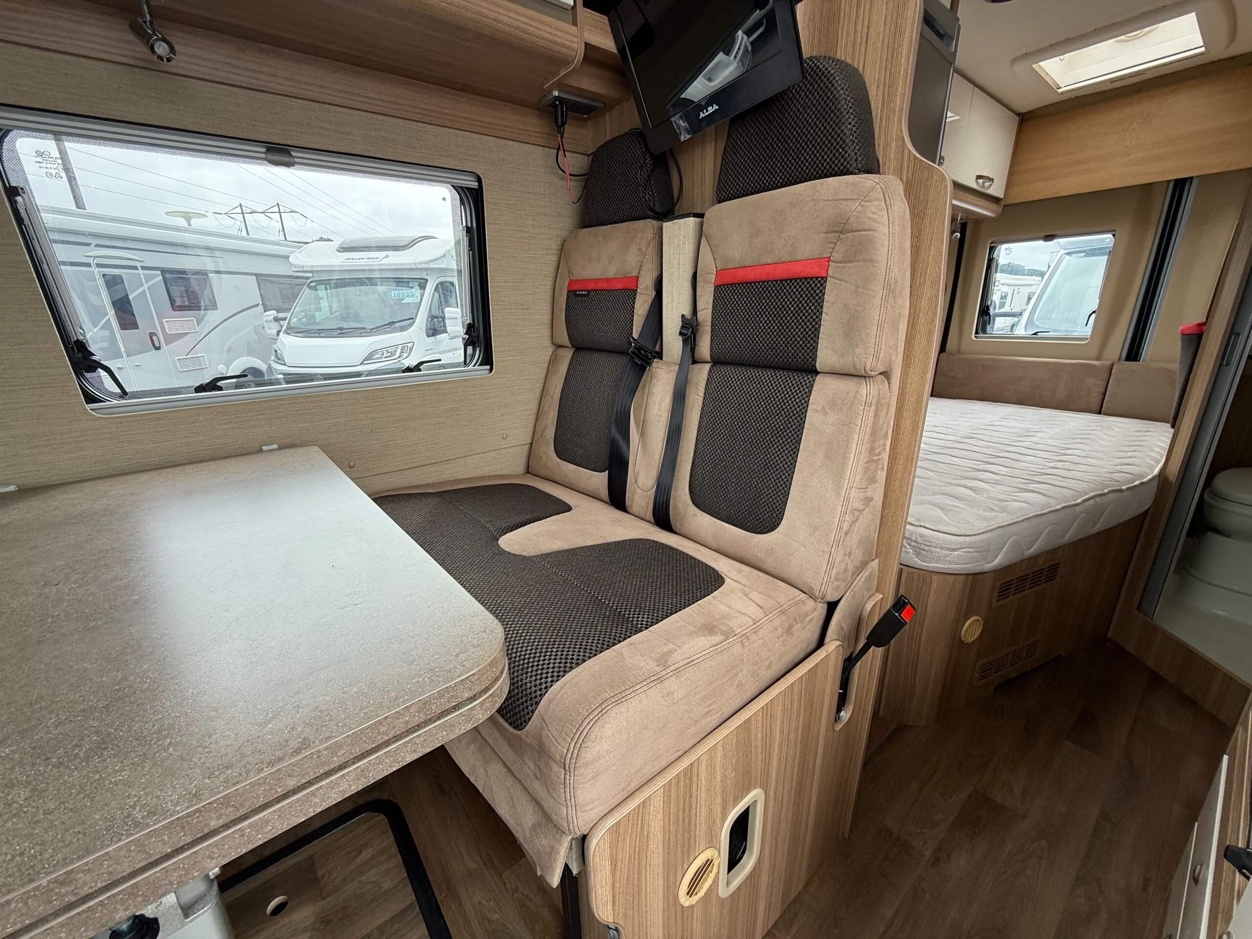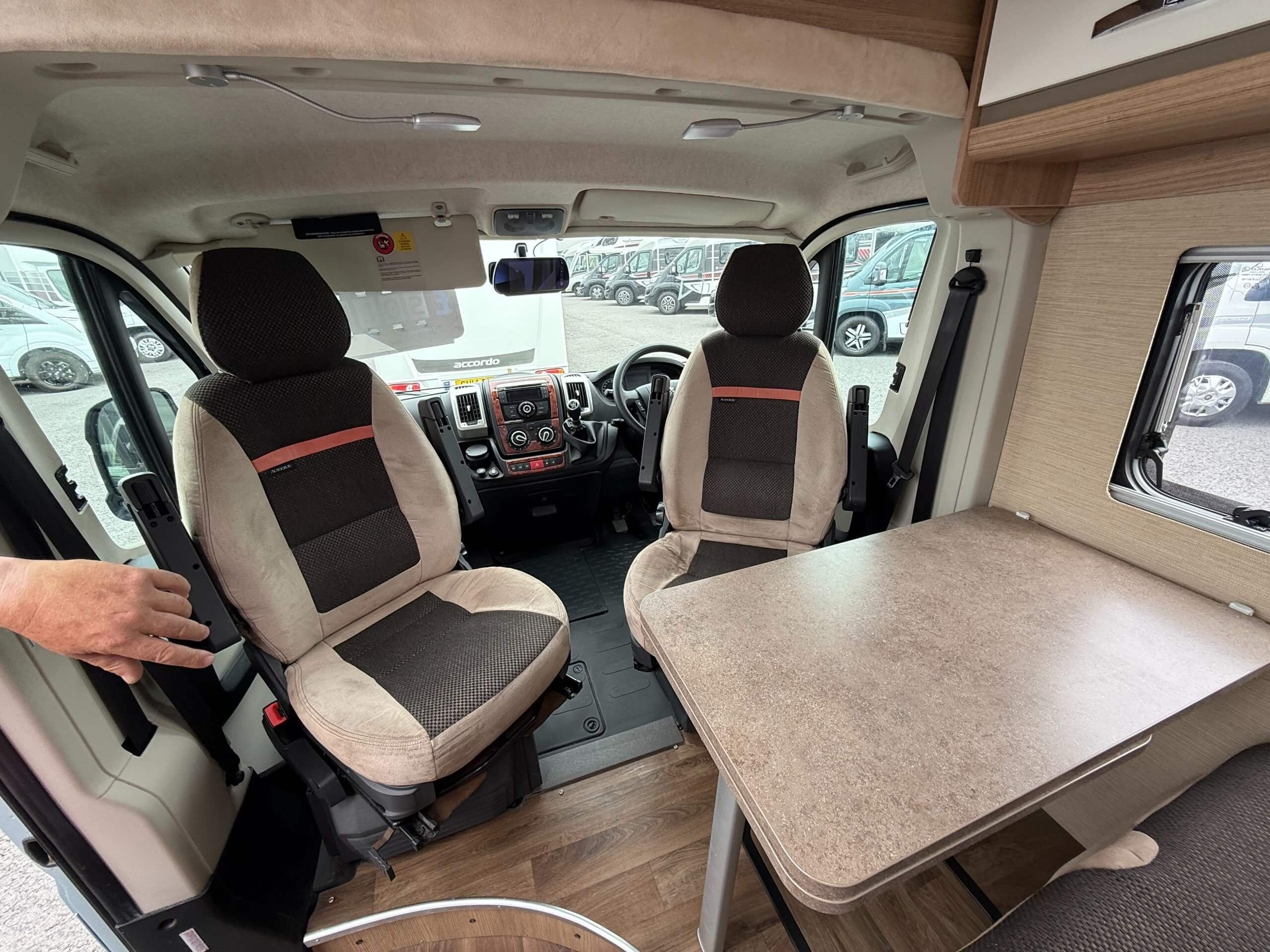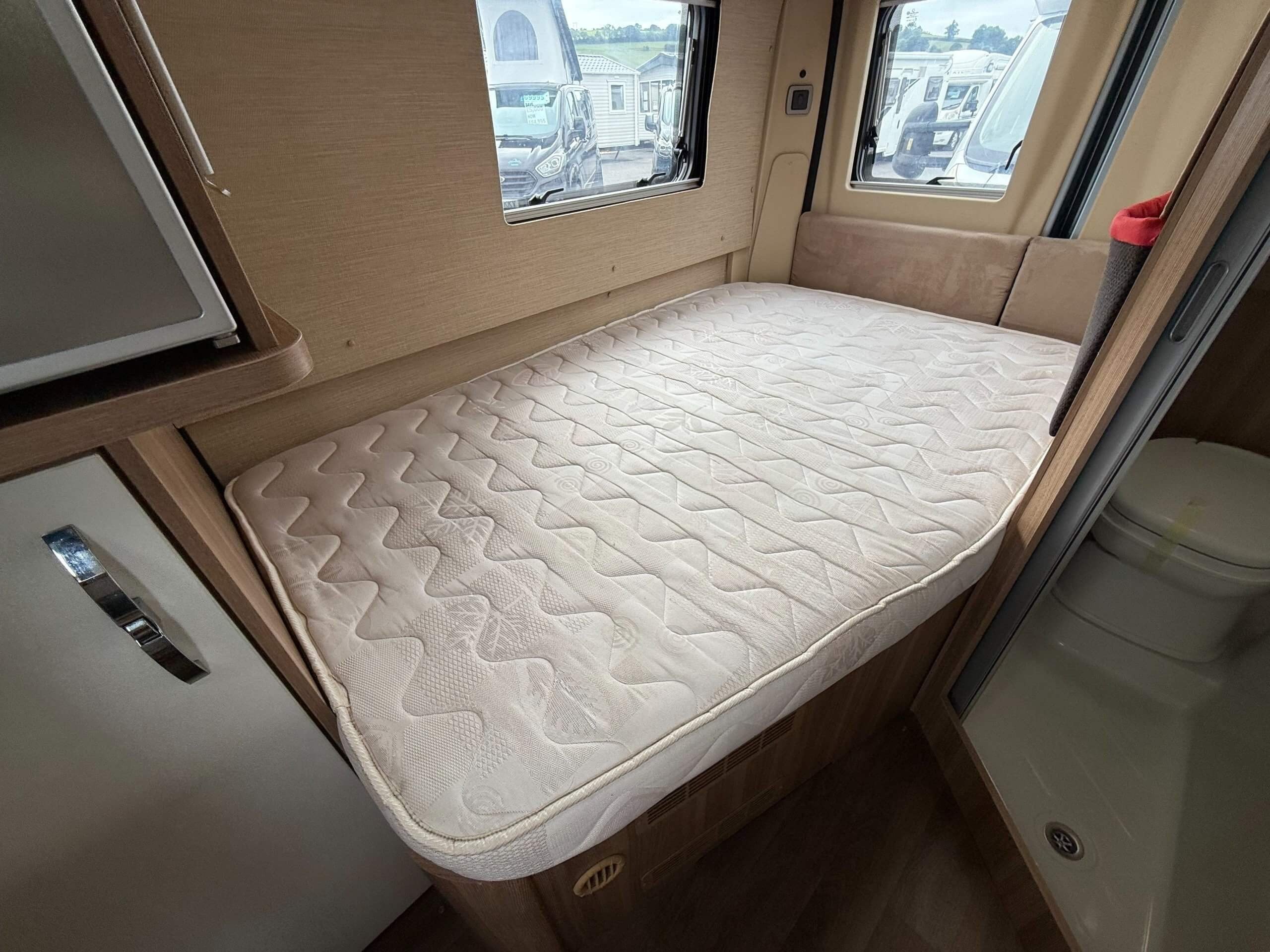 Autocruise packs one of the most popular layouts found on larger motorhomes into a 6 metre van conversion. There are three clearly defined zones, with the lounging space at the front, kitchen in the centre and to the rear a fixed double bed with washroom adjacent. -